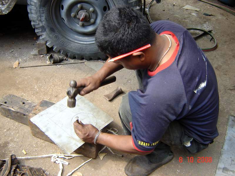 จากนั้นช่างทำการตัดตามรูปเดิม
