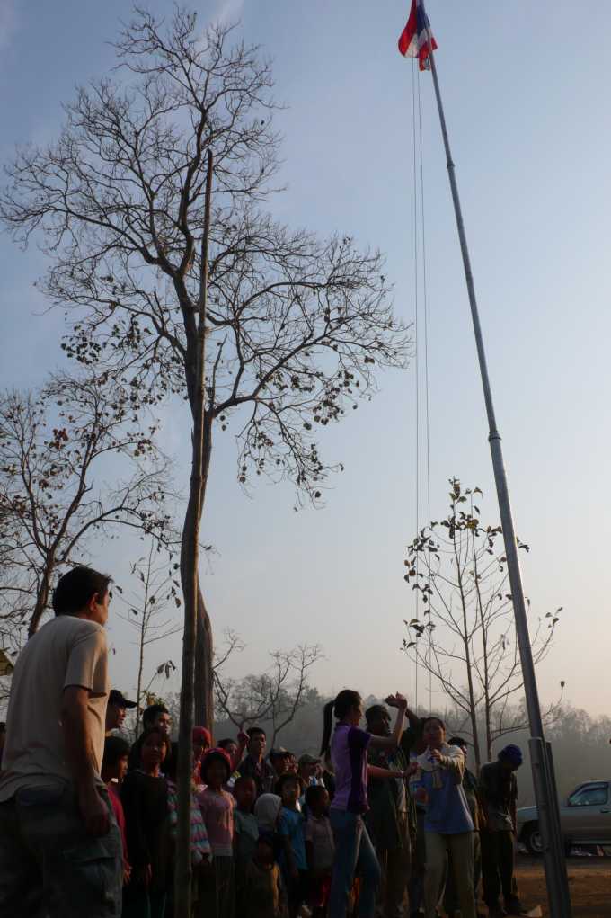 เหนื่อยสักเพียงไรก็ยังตื่นเช้าตั้งเสาธง ร่วมร้องเพลงชาติ