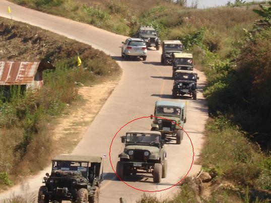 ทีมจิ๊ปสุโขทัย ผม(M38) พี่หมอ(M151 A1) ครูสารพัดช่าง(CJ6) อ.เสรฐ(lanlover) ถ้าไม่ผิดพลาด 4 คันนี้ คงจะต้องลุยให้ถึงที่หมายได้แน่นอน (หมายเหตุ ......เตรียมตัว A ติดหน้ารถใว้ให้ลากเรียบร้อยแล้วครับ...5555)
