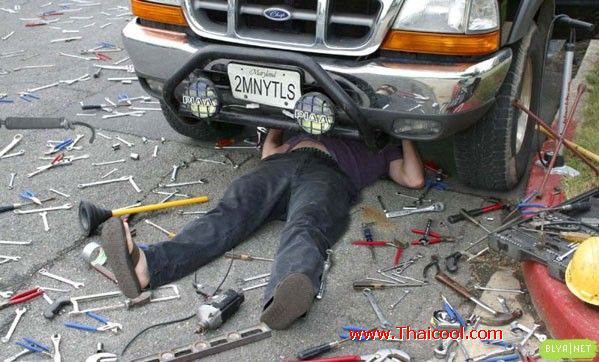 ปรากฏว่าน้ำมันเครื่องหายไปหมด เนื่องจากกรองน้ำมันเครื่อง มันแตก เครื่องไม่มีอาการ แต่ไม่มีแรงออกเกียร์ 1 ดับ สงสัยต้อง ฝาแดงแน่ ๆ คนนี้ละครับที่ขับพัง