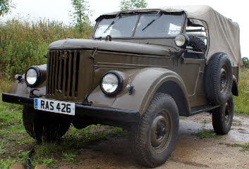 Gaz 69 4x4 Russian Military jeep troop carrier: Weight 1525 kg, Load capacity 500 kg, Seating 8 troops, Length 3.850 mtr, Width 1.850 mtr, Height 2.030, Engine 2.5lt ohv
