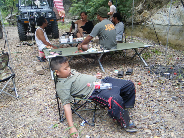 แบตหมดครับ เล่นน้ำตั้งแต่เช้า ที่นอนผู้ใหญ่เอาไปนั่งกินเหล้าเลยพับคาเก้าอี้หลังจากดวดโค้กไปหมดขวด....ทายาทท่านเสธฯครับ