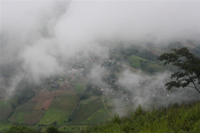 บ้านหมั่นขาว(ชาวเผ่าถิ่น) มองจากที่สูงมองเห๊นเป็นบางครั้งนอกนั้นหมอกปกคุม