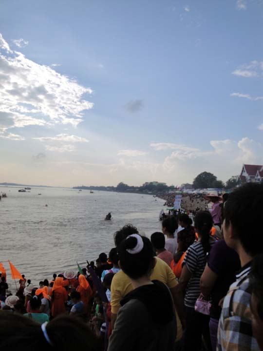 ที่ริมแม่น้ำโขง..การแขงเรือ ก่ำลังดุเดือด..ไกล้ภืงรอบสุดท้าย..คนดูเริ่มรอรุ่น..ว่าไครจะได้ที่นื่งของปี..