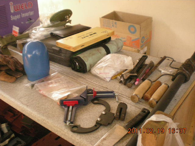 วันนี้งานเสร็จไปเยอะ ก็เลขพาเพื่อนๆชมช๊อป ของผมกันหน่อย อันดับแรกโต๊ทำงานนี้ ภูมิใจเสนอ เป็นบานประตูที่มีอยู่เอามาพาดกับเก้าอี้ด้านล่าง ทำจนแอ่นเพราะความหนักของชิ้นงาน คดว่าเสร็จงานแล้วคงเก็บไว้เป็นที่ระลึกแทนการเอาไปใชงาน