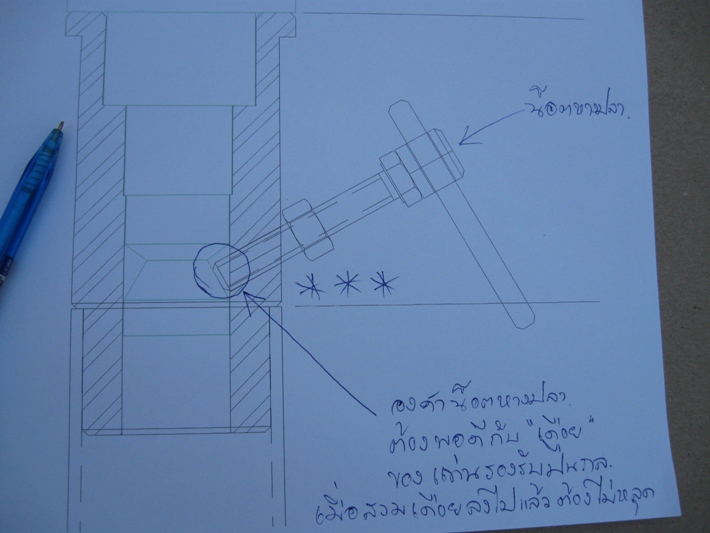 จาก..คำตอบที่ 155 ผมขออธิบายให้เข้าใจนะครับ...เมื่อสวม "เดือย" ของแท่นรองรับปืนกล.ลงมาจากปลายเสา องศาของ "น็อตหางปลา" ก็ต้องลงมาให้พอดีกับ "สโล็บ" ของ "เดือย" (ตามภาพ) จึงจะสามารถ "ล็อค" เดือยได้ เพราะในขณะที่รถ Jeep ขับเคลื่อน ปืนกลจะต้านลม และได้รับแรงสั่นสะเทือนจากการขับเคลื่อน จะทำให้ปืนกลหมุนไปรอบ ๆ อาจมีอันตรายไปปะทะกับต้นไม้ข้างทาง หรือรถที่วิ่งสวนมา อีกทั้งยังเป็นการเสีย "บุคคลิก" ของรถ Jeep ลาดตระเวน ฉะนั้น ในส่วนของน็อตหางปลามีความสำคัญมาก