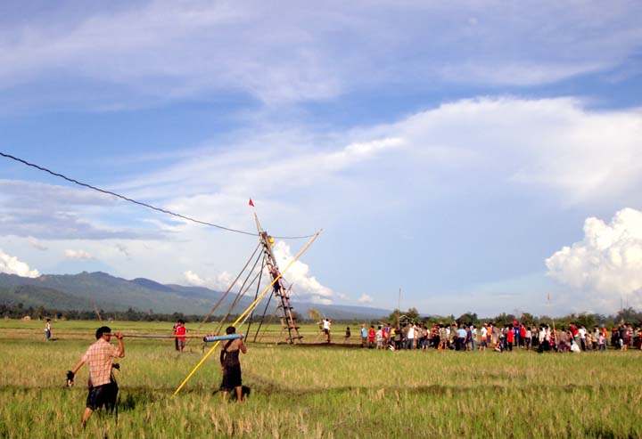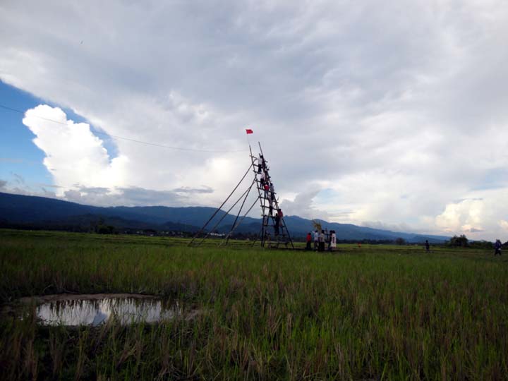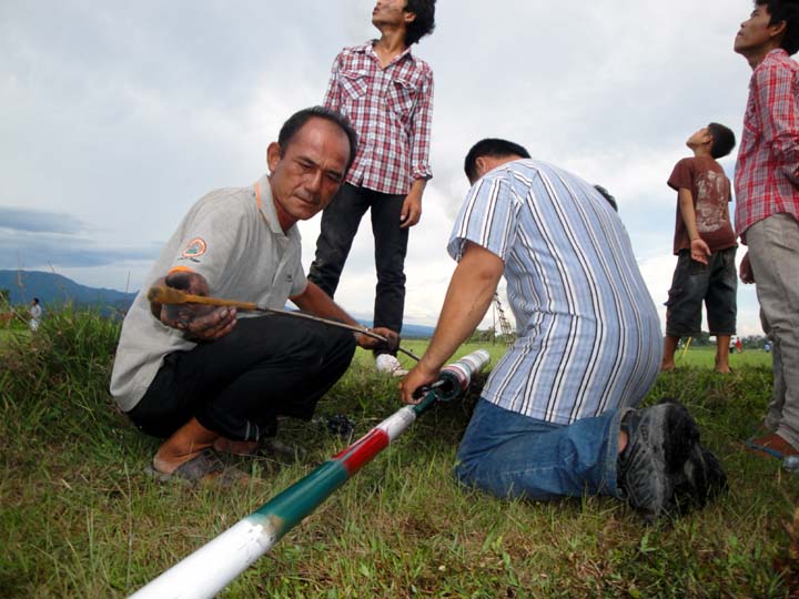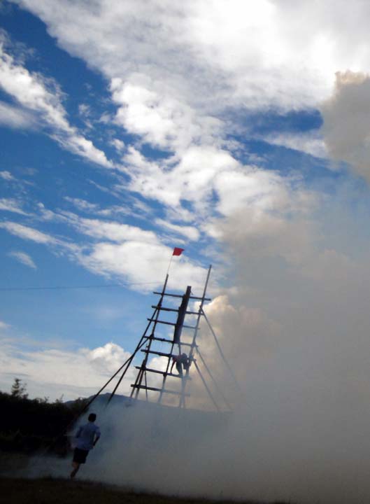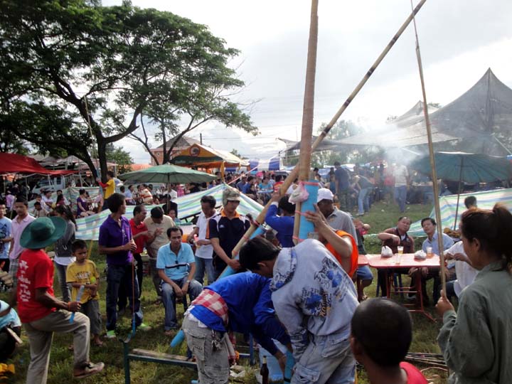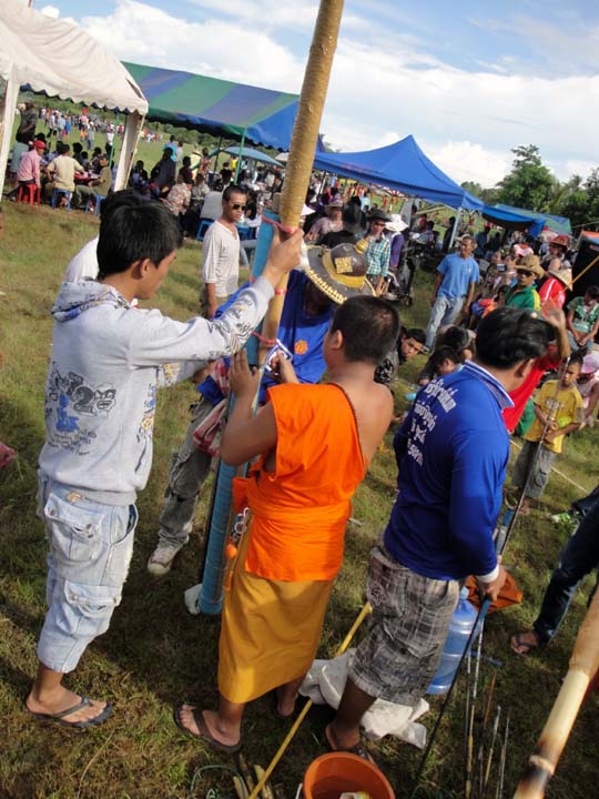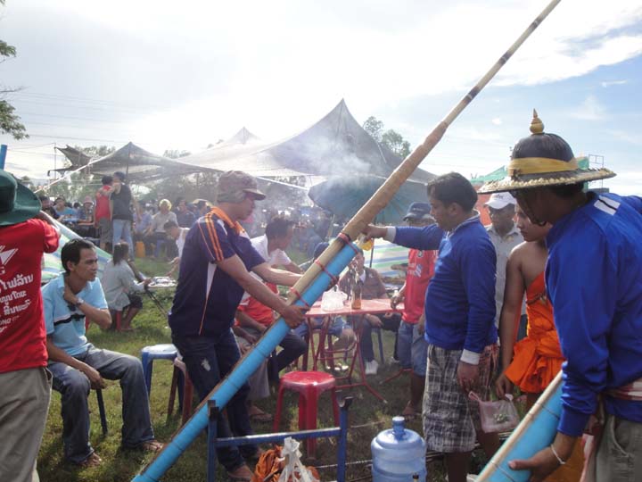 ฐานปล่อย บั้งไฟที่ทีมงานต้องนำขื้นไปติดตั้งเอง..จุดฉะนวนละนะ..