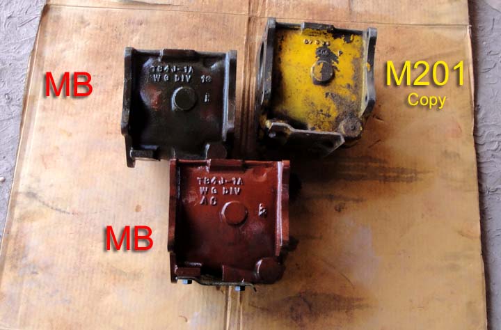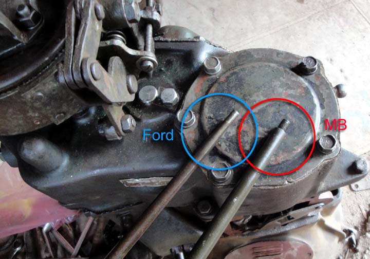 พลิกกลับมา จะเห็นรหัสที่ต่าง.. T84 J-1A นั้นเป็นของ MB ( ทรั้งสองเป็นผลิตภัณฑ์ ครั้งที่สองของบริษัท Willys Second Production ดูจากจุดรบายน้ำมันเกียร์ครับ ) ส่วนสีเหลืองขวามือเป็นเสื้อเกียร์ก๊อปปี้..ไม่ได้มาจากจีนครับ แต่เป็นของฝรั่งเศสทำให้กับ M201 เป็นรถจิปที่เอาต้นแบบของ Willys MB มาทำใหม่ครับ...ตัวนี้ผมขอไม่เลือกใช้..