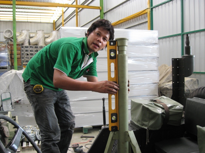 ลองให้คุณช่างยืนเทียบตำแหน่งที่ต้องจับปืน...ดูแล้วลงตัว ไม่สูงเกิน ไม่ต่ำเกิน อยู่ระดับราวนมพอดี..เป็นอันว่าติดตั้งเรียบร้อยแล้ว..อาทิตย์หน้าจะนำไปพ่นสีจริง แล้วจะได้นำมาติดประจำรถเลย เมื่อพ่นสีจริงแล้วจะนำภาพมาแสดงให้ชมอีกครับ