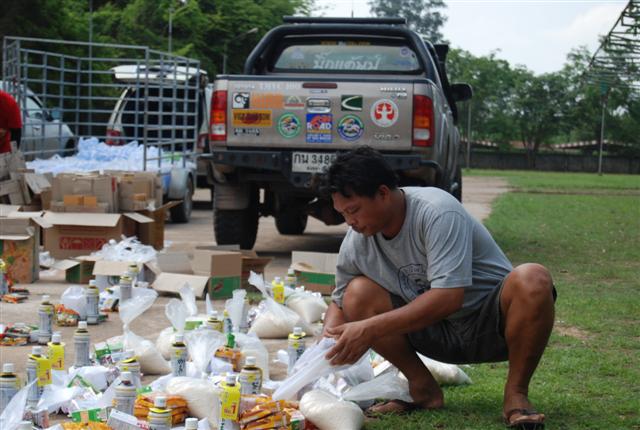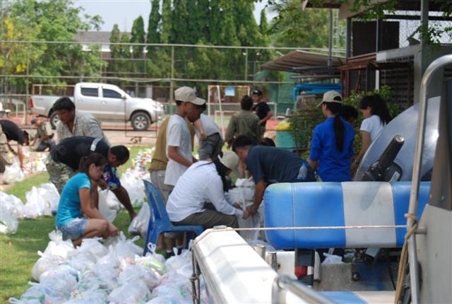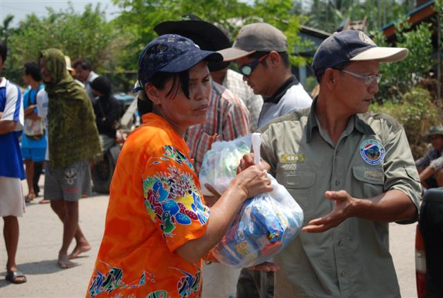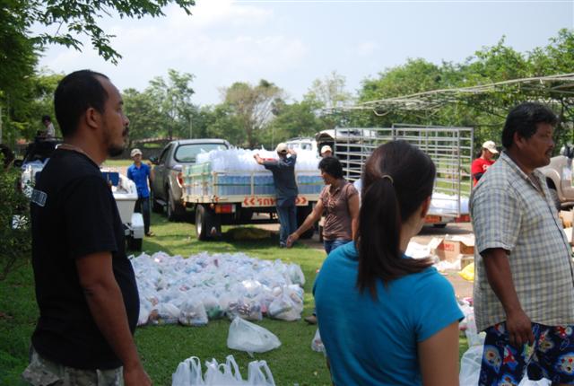 ชาวบ้านรอถุงยังชีพ