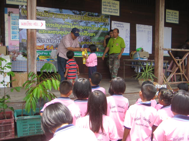 บ่ายๆ มอบอุปกรณ์การศึกษาที่ติดไม้ติดมือมา พบปะเพื่อนกลุ่มต่างๆ พักผ่อนตามสบาย