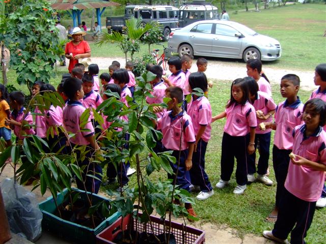 เตรียมกล้าไม้ที่มีอยู่ไม้มะค่าประมาน 1000 ต้น อ.แลนด์และผู้ปกครองนักเรียน