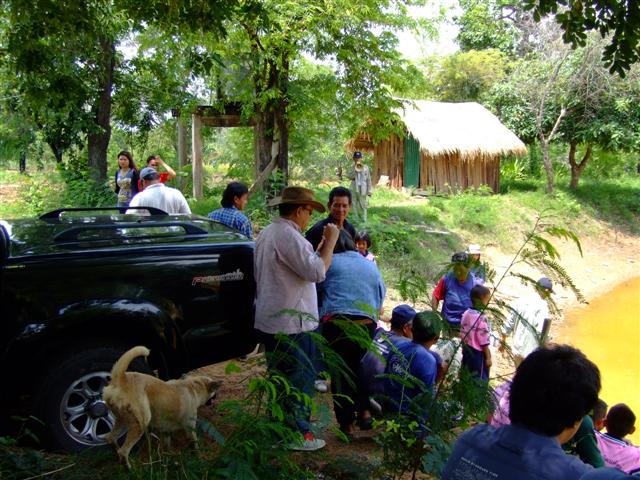 รับเพื่อนที่เริ่มเข้ามาในพื้นที่ คุณจอห์นและครอบครัวมามอบของแล้วส่งเข้าที่พัก คุณหนึ่งบาท=หยาดเหงื่อจากระยอง นำทุเรียน เงาะมังคุดมาให้ทดลองปลูก ส่งเข้าที่พักแล้ว หมอต๊อกและคณะลูกๆนำกล้วยมา 9 หน่อพร้อมทั้งปุ่ยคอกหลายถุง คุณหมอต๊อกยังมาทำสนามให้พวกเราทดสอบอีกด้วย แลนด์ดีกรีโรงหวานมาช่วยดูแลงานรับแขกตอนเย็นกลับไปสั่งพันธุ์ปลากินพืชให้เพื่อนำมาปล่อยเป็นอาหารกลางวันนักเรียน ตอนค่ำท่านกาแฟไฟโทรบอกเปลี่ยนแผนไม่ไปกรุงเทพแล้วบอกว่าใจอยู่ที่น้ำน้ำซำอยากพบเพื่อนหนุมาน ผมเลยแจ้งว่าขณะนี้ลุงกล้วยตากเข้าพื้นที่แล้ว จะกางเต็นท์นอนที่โรงเรียน ออกมาเดี๋ยวนี้ออกมากินข้าวที่ชุมแพ ทำไงดีลุงกล้วยตากซื้อไก่มาต้องยัดใส่ตู้เย็น รีบเดินทางไปตามคำเชิญของท่านกาแฟไฟ ระหว่างออกเดินทาง รับสายท่านคนชายแดนบอกขออนุญาตผ่านทางจะไปเชียงใหม่ไปรับเจ้าสาวคนล่าสุด แล้วจะรีบกลับมาให้ทันปลูกต้นไม้พรุ่งนี้ ขณะนี้อยู่อ.คอนสารโอเคเดี๋ยวผมไปสัมผัสมืออวยพรเดินทางมีโชคได้พบเจ้าสาวแสนสวยแล้วกันพบปะพูดคุยกันพอหอมปากหอมคอ ลาจากกันที่โต๊ะอาหาร รีบบึ่งรถเข้าชุมแพ มีสายเข้าอีกสายหนึ่ง ท่านสารวัตรโตโต้สอบถามเส้นทางจากฉะเชิงเทรามาสีคิ้วจะเดินทางคืนนี้แวะนอนโคราช โอเคเดินทางปลอดภัยนะครับทุกท่าน