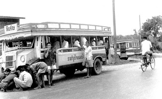 คิวรถเดิมอยู่หน้าโรงเรียนบ้านจอมบึง ระยะทางสามสิบกิโลเมตร ใช้เวลาวิ่งขนผู้โดยสาร