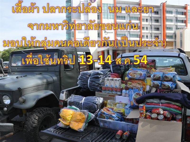 ในโอกาสนี้ทางกลุ่มจะได้บำเพ็ญประโยชน์ มอบข้าวของเครื่องใข้อาหารแห้ง ให้แก่ชาวบ้าน และนักเรียนชาวเผาถิ่น บ้านหมันขาวไปในตัวด้วย