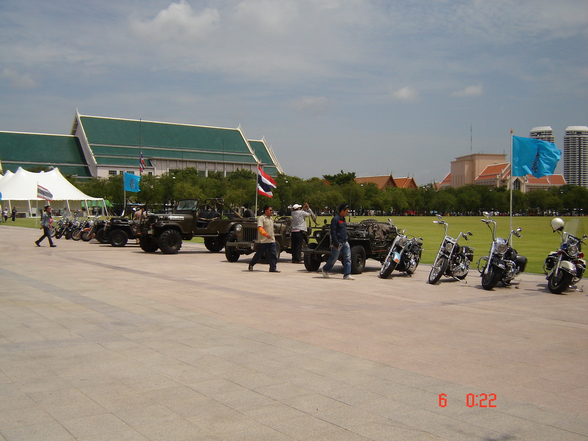 เวลา 12.00 น. เตรียมตั้งขบวน jeep เพื่อประดับธง ตราสัญญาลักษณ์