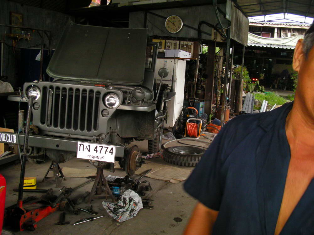 ตอนนี้จับเจ้าแก้ผ้าอาบน้ำครับ กะรื้อช่วงล่างทำใหม่ทั้งหมด(ผมแอบถ่ายกะให้ติดช่างด้วยไม่ยอมครับ ..คิดว่าคงเผลอสักวัน) ช่างผมว่าจี๊ปเหมือนเกวียนแต่ใช้เครื่องแทนวัวเท่านั้น