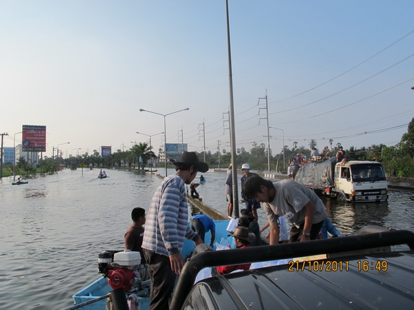 ถึงส่แยก อ.เสนา ขนย้ายคนและสิ่งของ เพื่อลุยต่อ รถเล็กเข้าไม่ได้