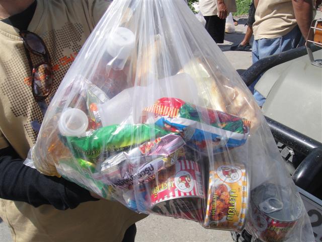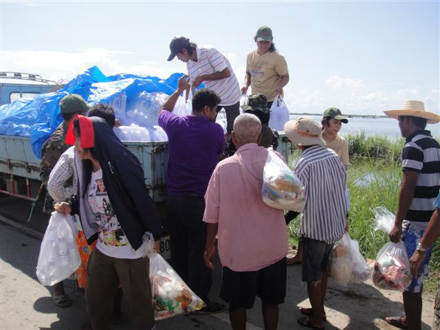 ขนถุงยังชีพลงเรือชึ่งเรือได้มาจาก ทีมน้ำเค็ม จ.พังงาขอบคุณแทนชาวบ้านด้วยครับ