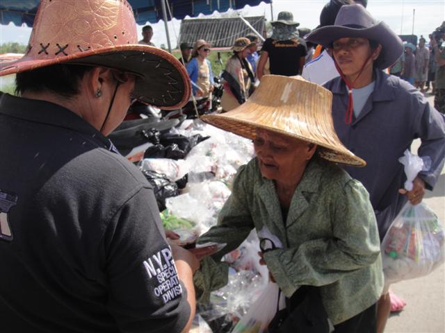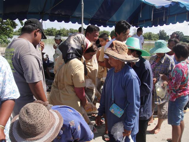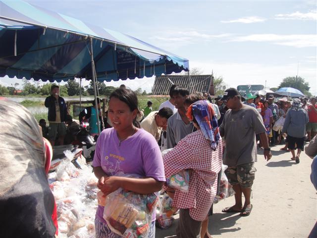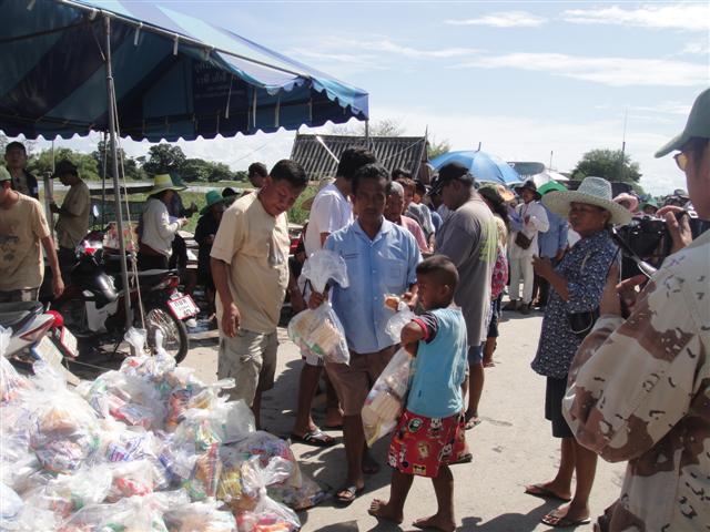 ชาวบ้านเข้าแถวรับของ
