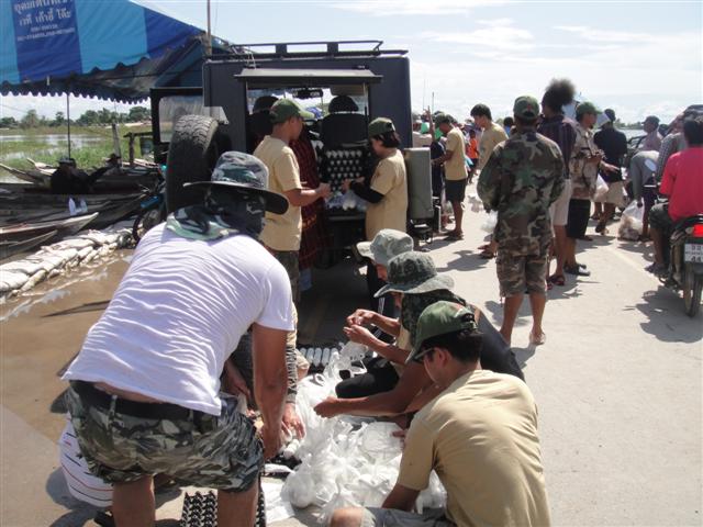 รถว่างแล้วช่วยชาวบ้านขนน้ำดื่มลงเรือ