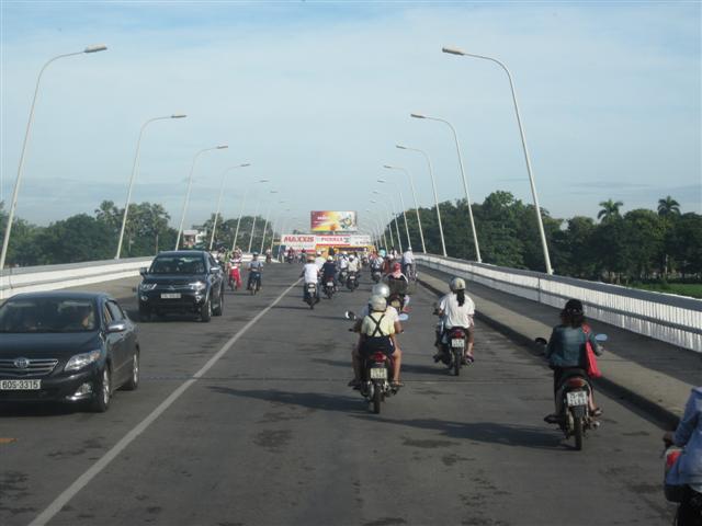 สภาพถนนในยามเช้ายังไม่หนาแน่น ส่วนใหญ่มอไซด์ ผู้คนมีระเบียบในการใช้รถใช้ถนนค่อนข้างจะดี ไม่ขับเร็ว เอื้ออารีย์ให้ผู้ร่วมทาง และสวมหมวก100% เป็นไปได้ไงนี่ ทั้งๆที่เริ่มโครงการหลังไทยตั้งหลายปี น่าทึ่งมาก (ใครไม่สวมหมวกกันน๊อกให้ปั่นจักยาน)