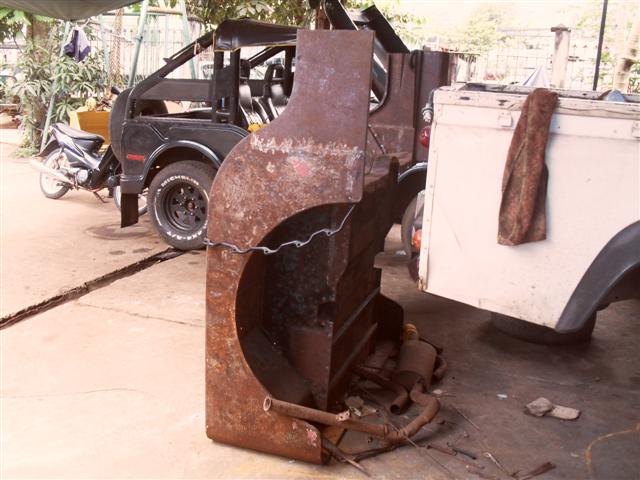 ทั้งด้านหน้าและด้านหลังอะไหล่ยังมีเกือบจะครบครับ...ล้อกระทะผ่า มือจับรอบคัน ที่แขวนล้ออะไหล่ ไฟท้ายที่ผมจะได้หนึ่งตัวด้านซ้าย ส่วนปากนกแก้วผมไม่บอกเจ้าของว่าให้ถอดทิ้งซ่ะ..