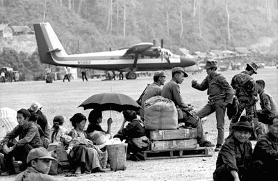 เมื่อฝรั่งเศสซึ่งเป็นเจ้าของอาณานิคมได้มอบอำนาจอธิปไตยให้กับอินโดจีน และถอนกำลังทหารออกจากอินโดจีนตามข้อตกลงสัญญาเจนีวา ๒๔๙๗ สหรัฐพยายามจะเปลี่ยนสงครามดินโดจีน เป็นสงครามเกาหลี แต่ไม่มีประเทศใดเอาด้วย สหรัฐอเมริกาจึงทำสงครามลับในลาว สหรัฐอเมริกาได้ทุ่มเงินร่วม ๓๐๐ ล้านดอลล่าร์ ลงไปในดินแดนอันมีแต่ป่าดงพงไพรดังเช่นบรรพกาล เงินจำนวนนี้ ๘๕ เปอร์เซ็นต์กลายเป็นค่าใช้จ่ายกองทัพบกของรัฐบาลกษัตริย์ลาวซึ่งในปี ๒๕๐๒ ก็สะพรั่งไปด้วยรถจี๊ป รถบรรทุก และเหล่าทหารขนส่งทั้งๆ ที่ลาวไม่มีถนนที่จะใช้ได้ในทุกฤดูกาลเลยแม้แต่สายเดียว นอกจากนี้ยังมีฝ่ายสรรพาวุธ, พลาธิการ และสารวัตรทหาร การฝึกที่จะได้ผลอย่างจริงจังนั้น เพิ่งจะเริ่มขึ้นในปี ๒๕๐๒ สงครามที่กองทหารลาวเรียนรู้ก็เป็นสงครามแบบฉบับ ไม่ใช่สงครามต่อต้านกองโจร สำหรับเงิน ๓๐๐ ล้านดอลล่าร์นั้น ที่ใช้ไปในการร่วมมือทางเทคนิคและพัฒนาทางเศรษฐกิจก็มีเพียงเจ็ดล้านดอลล่าร์