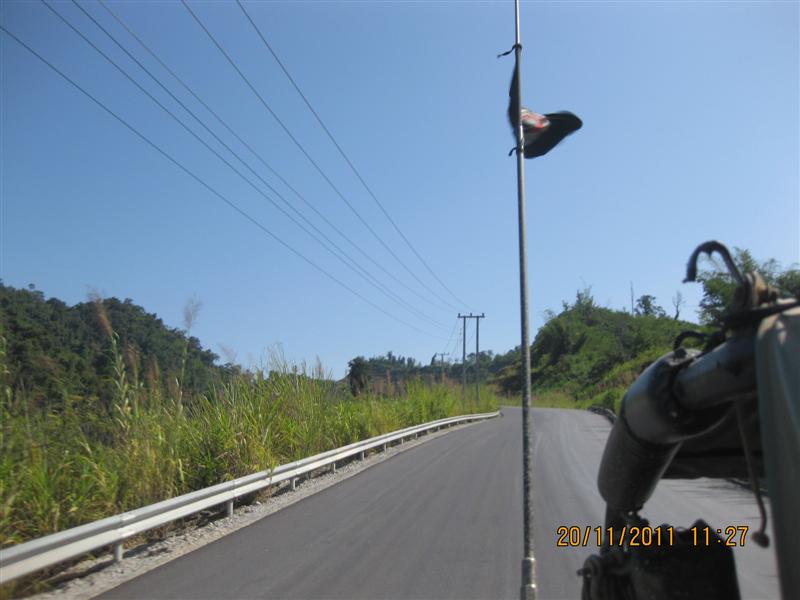 ธง"คนคอเดียวกัน"ปลิวสบัดตลอดเส้นทางในลาวเกือบสองพันกิโลเมตร.