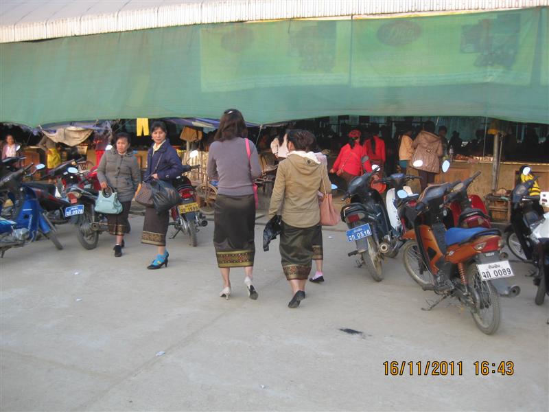 สังเกตุจากการแต่งกาย ที่นุ่งผ้าซิ่นจะเป็นคนของรัฐที่เพิ่งเลิกจาก"ห้องการ"(ที่ทำงาน) มาซื้อของที่ตลาด.