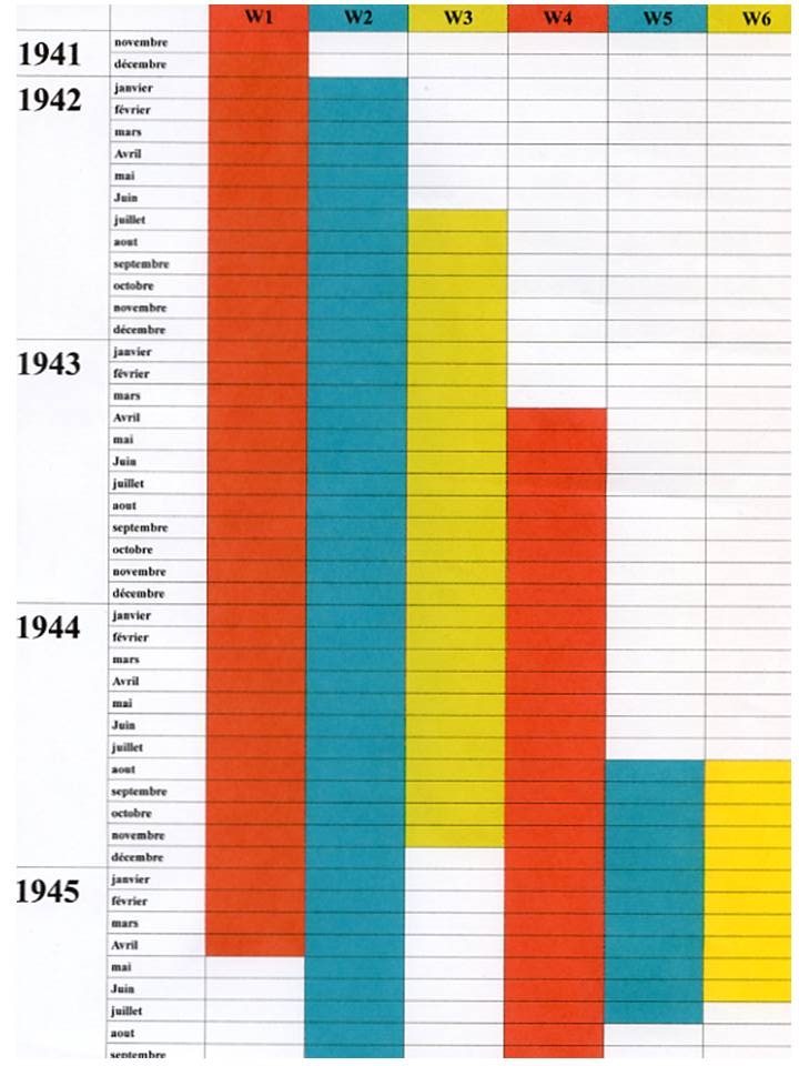 งั้นก็มาดูว่าฝรั่งเค้าก็ค้นหาเหมือนกันว่า คำว่า W1-W6 ที่ประทับบนบล็อก 638632 เป็นการผลิตช่วงเวลาไหน จากตารางจะเห็นได้ว่า บล็อก W1 จะผลิตตั้งแต่ปี เดือนพฤศจิกายน1941-เมษายน1945 และ ผมเดาได้ว่า W1 หมายถึงบล็อกเครื่องยนต์ 638632 สายแรก (บล็อกแรก) ส่วน w2-w6 ก็แยกการผลิต และดูตารางว่าผลิตช่วงเดือนไหนของปีไหน...ฝรั่งเค้าทำไว้ครับไม่รู้จะเชื่อได้รึเปล่า