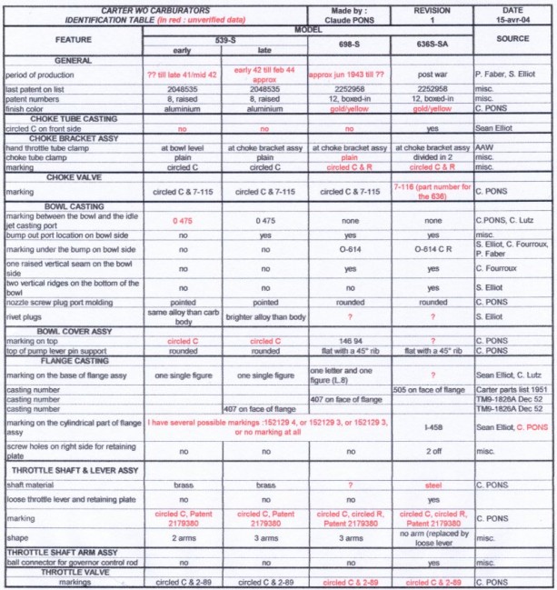 จะเห็นว่า carter carburetor wo -539 แบ่งออกเป็นสองรุ่นตามตาราง
