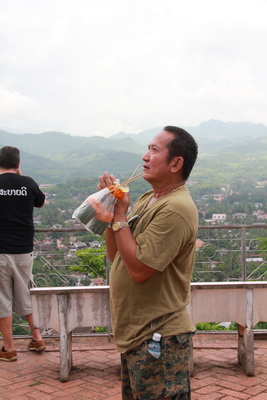 นัดหมายกับพี่เปี๊ยกโคราชและเรย์ขอนแก่นไว้ว่า เสร็จจากงานมอบโต๊ะเก้าอี้นักเรียนที่จังหวัดตากกันแล้ว ไหน ๆ ก็ขับรถกันมาไกลจากภาคใต้ มีโอกาสก็จะไปเยียมเพื่อน ๆ ตามจังหวัดต่าง ๆ ด้วย เสียดายที่พี่เปี๊ยกและเรย์มีภารกิจทั้งสองคน ไม่ได้เจอกันที่ตาก เลยชวนโกดำกับป๋ามนต์ตะโกลาและลุงดม พร้อมพี่เปี๊ยกและเรย์ไปเยือยประเทศลาวบ้านพี่เมืองน้องซะเลย ไม่นึกว่าท้าวเด็ด ณ เวียงจันทน์ จะพาไปย้อนรอยที่วังเวียง และสุดท้ายขับกินลมชมวิวกันไปเรื่อยจนถึงเมืองมรดกโลก "หลวงพระบาง" กับเส้นทางแห่งขุนเขาที่"ภูเพียงฟ้า"