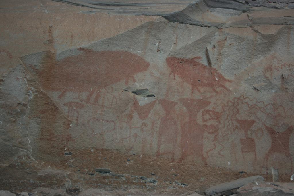 คำตอบที่ 151 ภาพเขียนสี ยุค 3000-4000 ปี บอกเรื่องราวประวัติศาสตร์ อุปกรณ์จับปลา(ตุ้ม) ปลาบึก สัตว์๋ป่า..ช้าง อาวุธ เป็นภาพเขียนสีที่อยู่ใต้หน้าผา(จึงไม่โดนแดด ฝน ทำความเสียหาย)