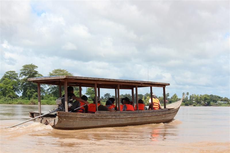 กลับมาที่ปากเซ/จำปาสัก หลังอาหารเช้าวันที่ 14 พวกเรามีโปรแกรมเดินทางไปน้ำตก"หลี่ผี" และ(ประมาณ 150 กม.)"คอนพระเพ็ง"(จากหลี่ผีไปประมาณ 20 กม.)ที่หลี่ผีจะต้องเอารถไปฝากในชุมชนใกล้ท่าเรือ ต้องนั่งเรือข้ามแม่น้ำโขง แล้วต่อรถไปอีก.