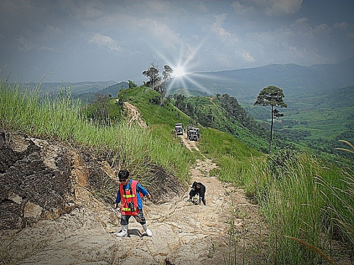 ข้างหน้าเป็นเนินยาวโค้งขวาขึ้นทางชันมาก ระหว่างรอขอถ่ายภาพไว้เป็นที่ระทึกก่อนถึงคิว