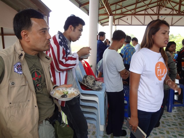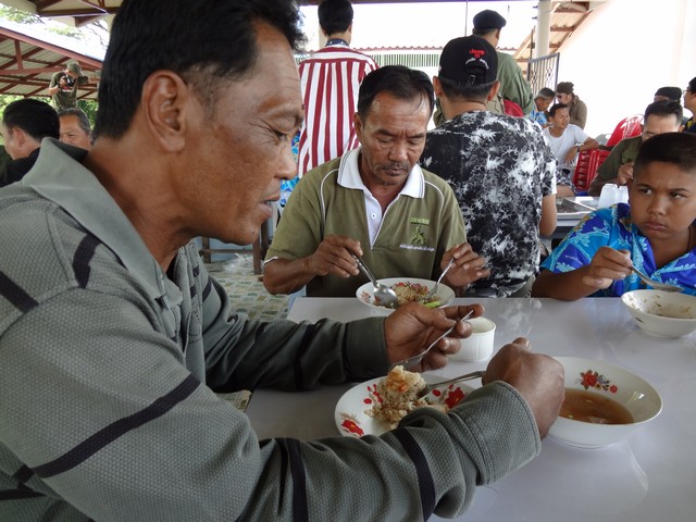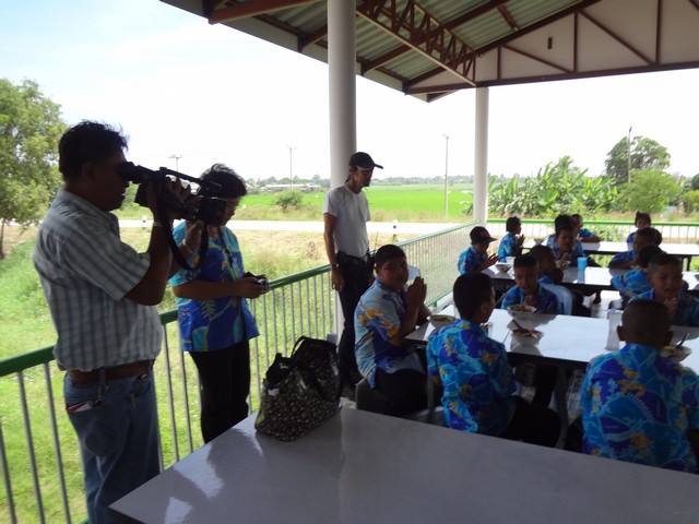 ระหว่างเด็กๆหยุดพักทานอาหาร ข้าวมันไก่ชิ้นใหญ่ๆ ทีมนักข่าวช่อง 3 ก็มาถึงงาน