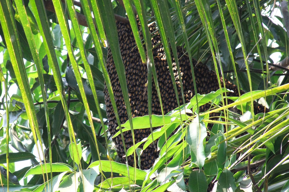 นัดเที่ยงกว่าจะเข้าพื้นที่ได้กว่า 2 ชั่วโมง ผึ้งหลวงรังใหญ่ได้กลิ่นควันไฟไล่ต่อยพ่อครัว โดนไป 15 หมัด หมอเพทายโดน 1 ดอกหลังจากร้องเพลง