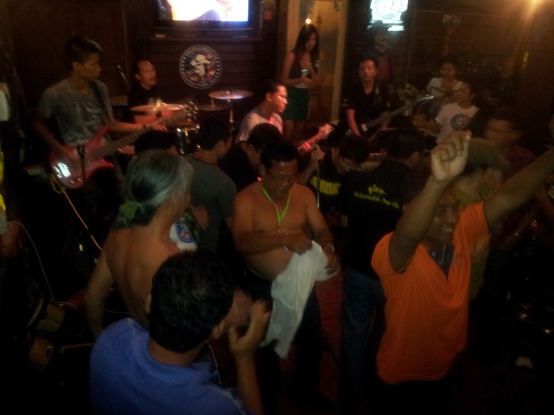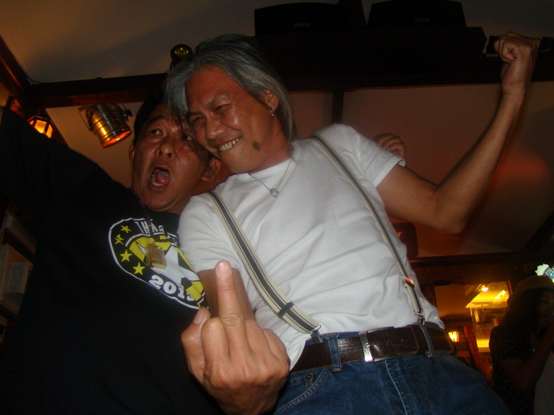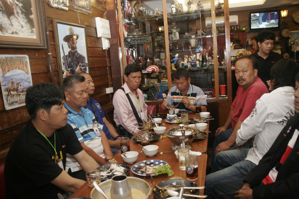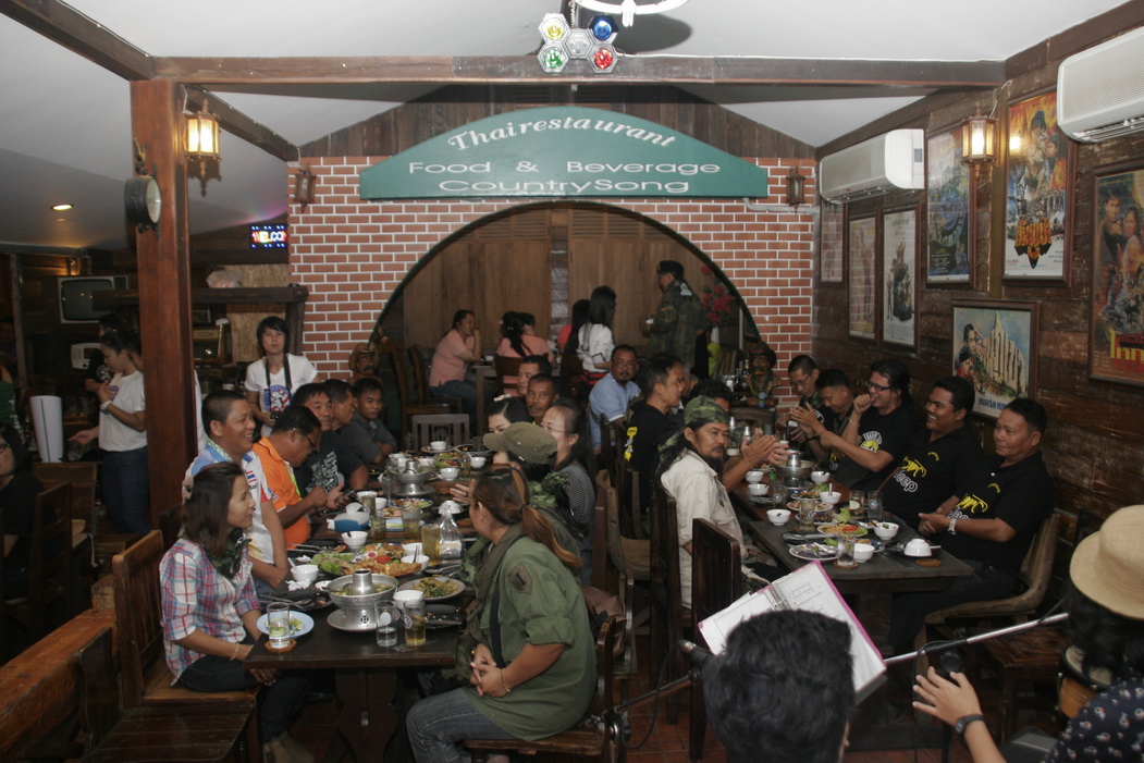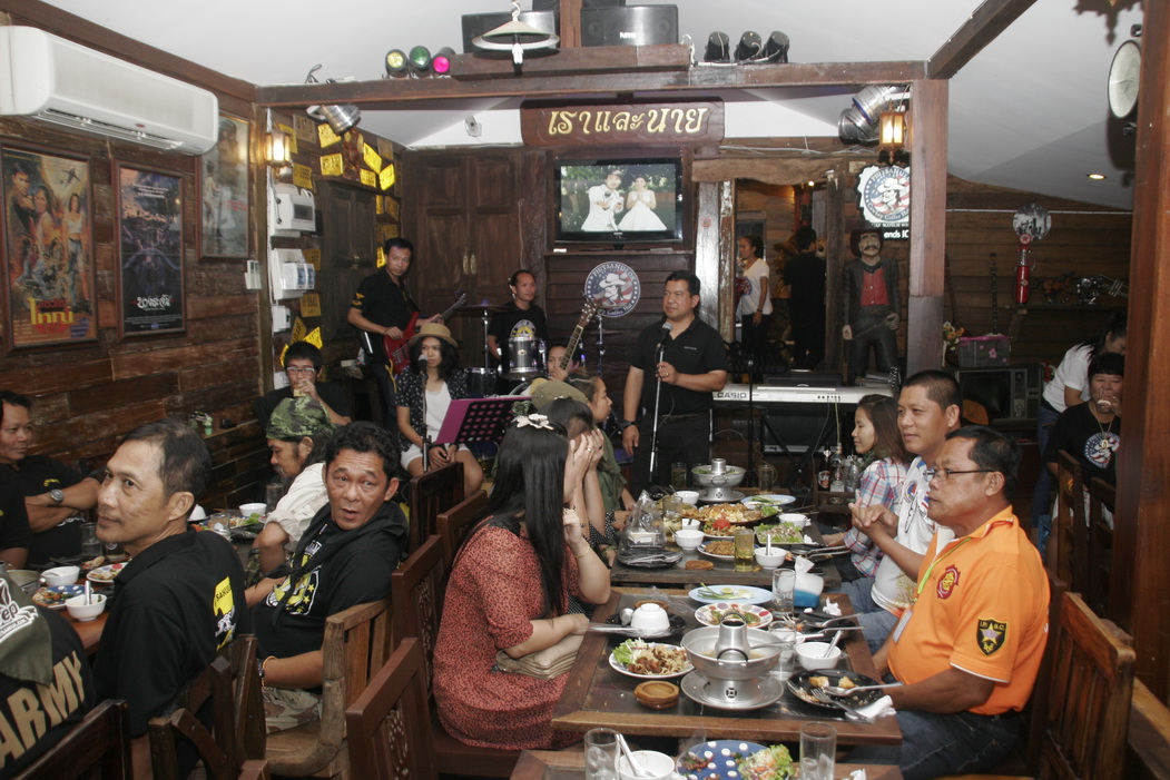 เฮียใช้ฯ (สวมเสื้อขาวมือขวาถือแก้ว) ส่วนเฮียตี๋ฯ ถือไมล์แนะนำตัว