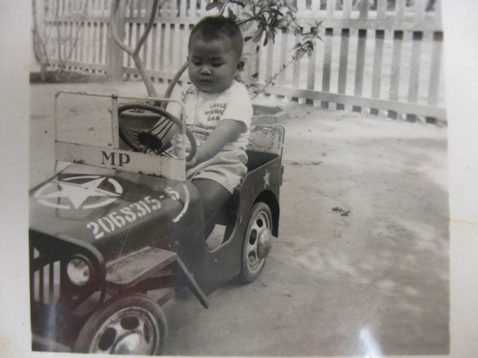 สืบเนื่องจาก คต.22-23 เห็นผู้พันน้อยใฝ่ผันอยากจะมีรถจี๊ปเล่นตอนวัยเด็กแต่ก็ไม่มีโอกาส...ทำให้ผมนึกขึ้นได้ว่าเมื่อสมัยวัยเด็กเราเคยมีโอกาสเล่นจี๊ปที่ยอดนิยมในสมัยนั้น ก็เลยค้นหารูปสมัยวัยเด็กโชคดีที่ยังเก็บไว้ในอารบั้มอย่างดี (ถ่ายเมื่อประมาณ 2 ขวบกว่า ๆ) บัดนี้เวลาล่วงเลยมา 50 ปีกว่าแล้ว