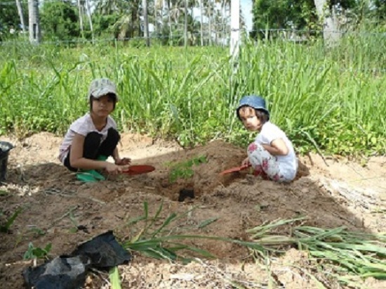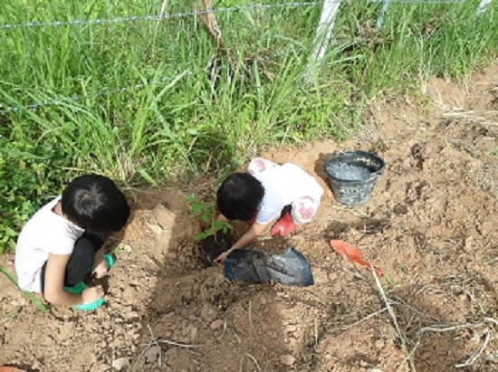 ดีครับปลูกฝังให้เด็กๆรักต้นไม้ ที่โรงเรียนผมให้นักเรียนใช้เสียมขุดต้นเล็กๆทีงอกอยู่โคนต้นแม่ไปปลูก