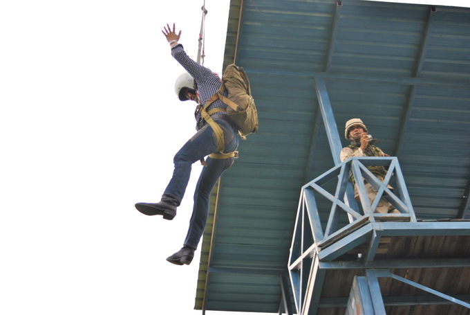 เฮียตี๋..ทหารพลร่มเขาไม่ให้หลับตา นะ เพราะว่าถ้าร่มหลังไม่กางจะได้ดึงร่มช่วยได้ทัน