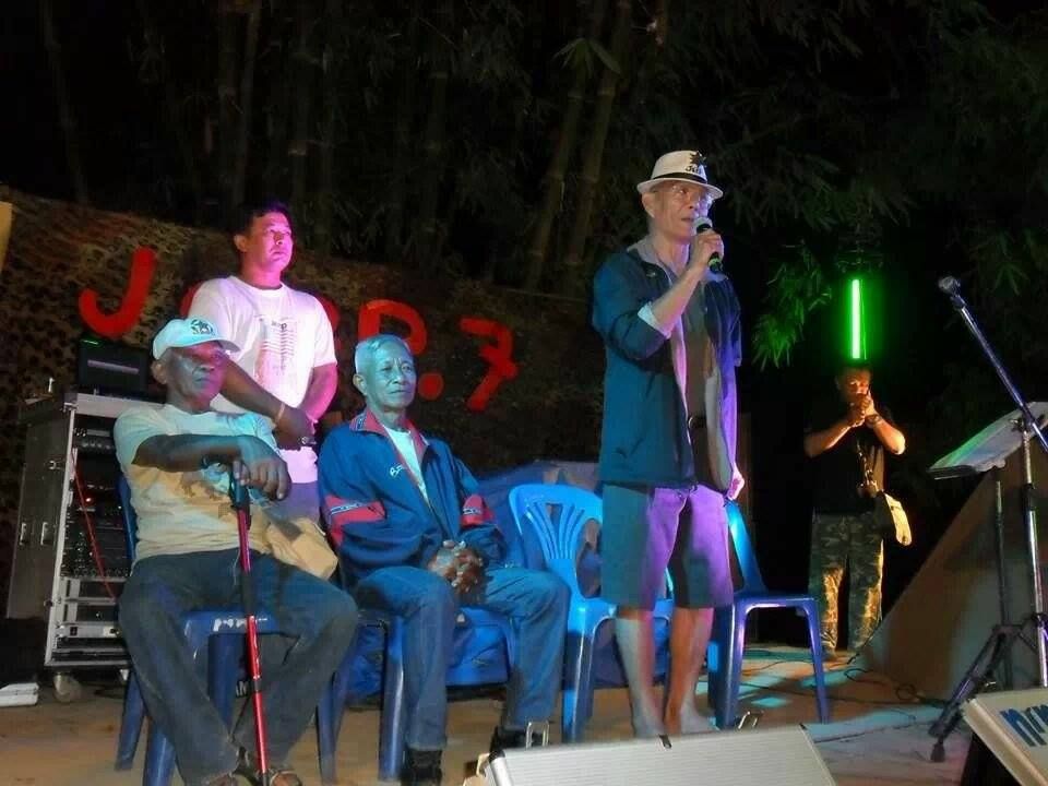 ผู้ใหญ่ในชมรม อาพยุง อาลมัย อาธวัช ขึ้นกล่าวบนเวที