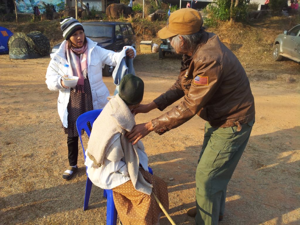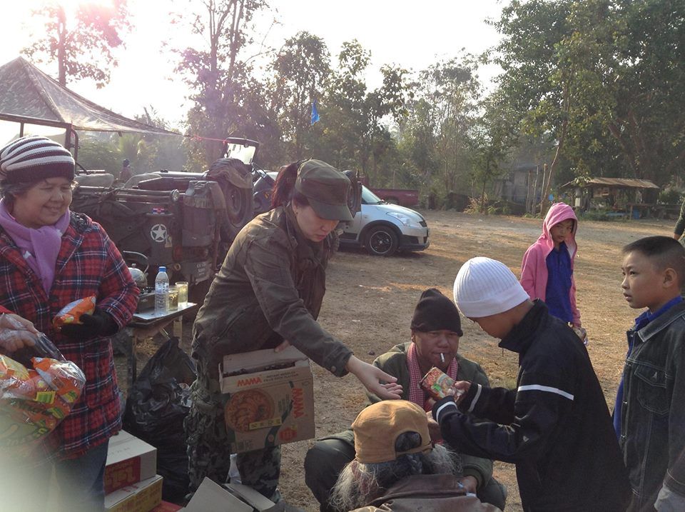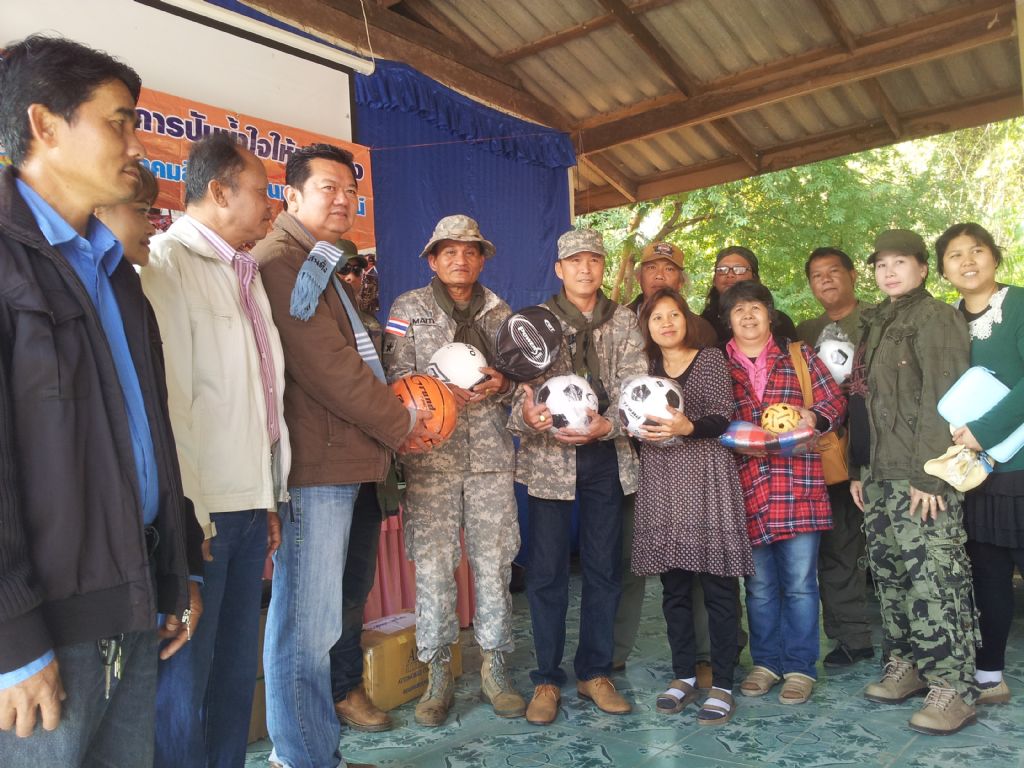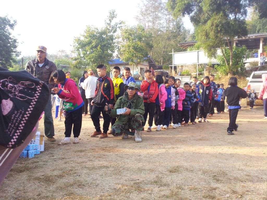 ชาวบ้านเข้าแถวรอแจกเครื่องกันหนาว ชนิดได้รับกันทุกๆท่าน