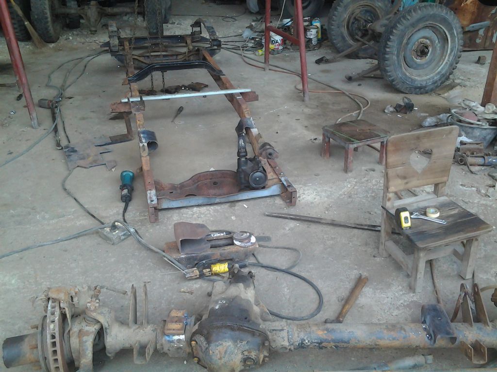 หลายคนสนใจ ถามว่าทำอะไร จริงๆแล้วนีเป็น project ข้ามทศวรรต กันเลยที่เดียว ใช้เวลาคิด เก็บของ ถอดใจก็หลายครั้ง นี่เป็นรถรถจี๊ปคันแรก ที่เริ่มซื้อมาจากลำปาง มาทิ้งใว้ทีสิงหบุรีหลายเดือน ไปสระบุรีหลายปี ไปลบบุรีหลายเดือน กลับมา กทม รวมๆแล้วน่าจะ6-7ปี ปัจจุบันเจ้าของปั่นจี๊ปเสร็จไปแล้ว 3 คันแต่คันแรกยังไม่เสร็จเลย คอบพบกับ hard core full option American แท้ๆตอนนี้ช่วงล่างข้างหน้าเสร็จแล้วครับ วันแรกที่จะทำ พี่เขาถามว่าทำคนเดียวทำได้เหรอ ก็บอกว่าเดี๋ยวจะทำไห้ดูไช้เวลา9วันแบบทำบ้างไม่ทำบ้างในทีสุดก็จบออกมาแบบนี้สำหลับช่วงล่างด้านหน้าครับ