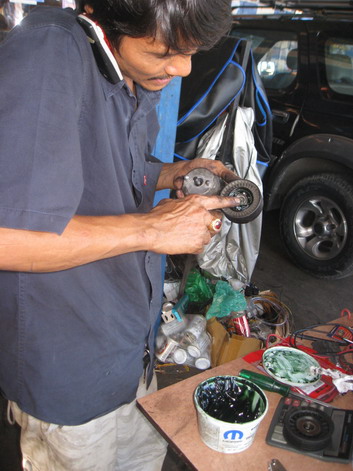 ช่วงนั้นกำลังจะค่ำ รถยังไม่เสร็จเลย ก็เลยขอให้ช่างขาว อัดจาระบีให้หน่อย