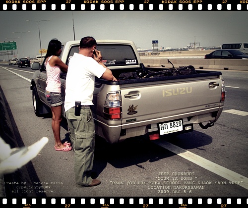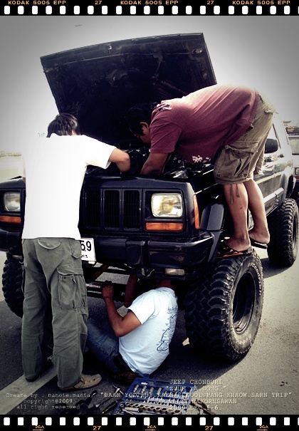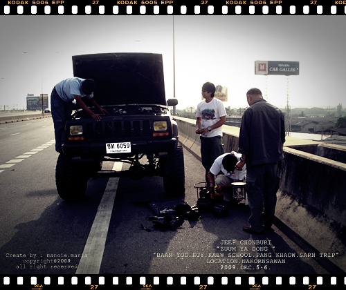 หลังจากเดินทางมาได้สักพัก...ประมาณกิโลเมตรที่11"""(สายบางนา.ตราด)...งานเข้าแต่เช้าครับ...ปรากฎว่าบัคเก็ตแกนพัดลมฟรีปั๊ม...เกิดอาการงอแงครับ...จอดครับ...