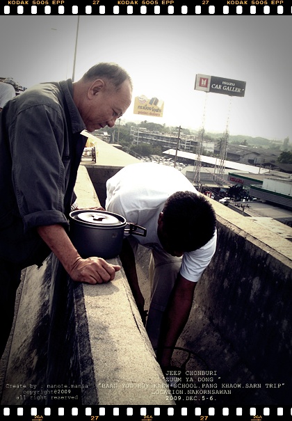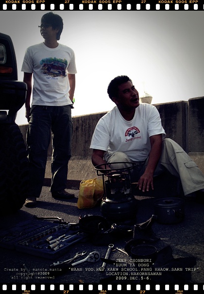"""ระหว่างรออะหลั่ย...แดดเริ่มแรง...ลมข้างบน(ทางด่วนบูรพาวิถี)ก็แรง...ความหิวเริ่มเข้ามาเยือน...ท่านประธานเชิญให้ท่านพี่3939ติดตั้งเตาแก็สติดไฟต้มน้ำ...เพือทำการต้มมาม่าประทังความหิวกันไปก่อน...(แล้วจะโดนข้อหาวางเพลิงมั๊ยเนี่ย...)