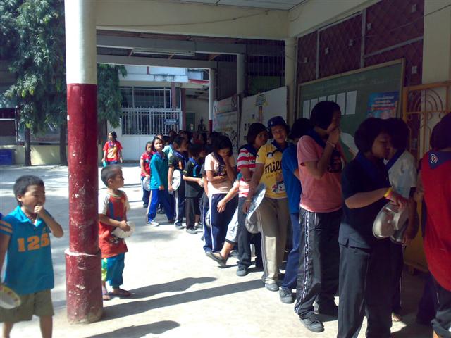 ภาพเด็กๆลูกชาวเขายื่นรอเข้าแถวทานข้าวถ้าวันหน้าเราร่วมพลังกันมาทำบุญด้วยกันถ้าจะดีไม่น้อยนะครับ