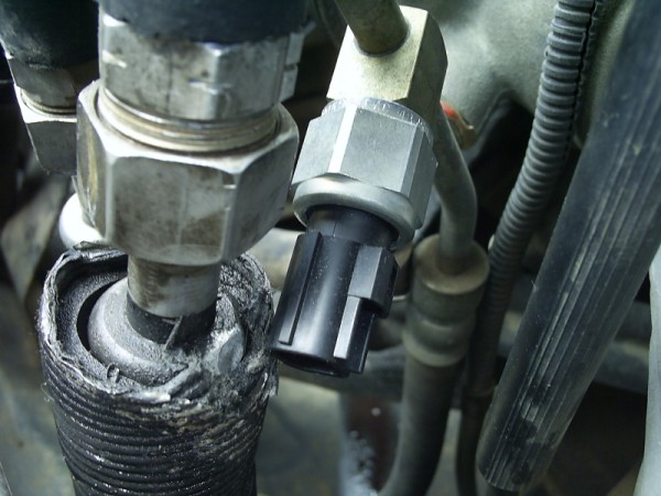 A pressure sensing switch is included in the power steering system (mounted on the high pressure line). This switch will be used only on vehicles equipped with a 2.5L engine and power steering.